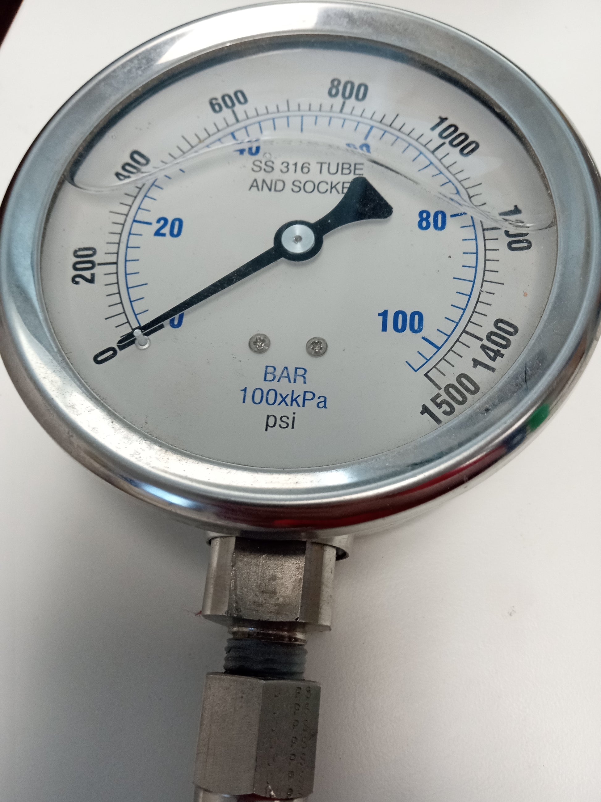 0-1500psi Pressure Gauge (0-100 bar and 0-10,000 kPa) half inch 316 Steel