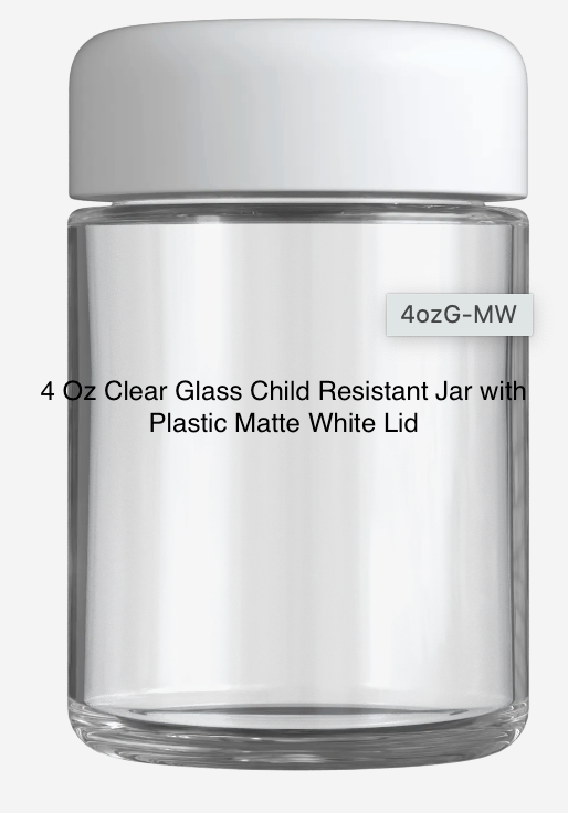 4 Oz Clear Glass Child Resistant Jar with Plastic Matte White Lid-100 units per case
