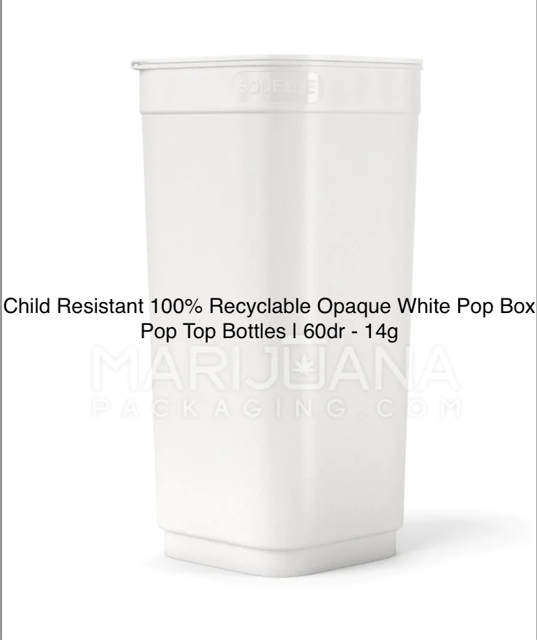 Child Resistant 100% Recyclable Opaque White Pop Box Pop Top Bottles | 60dr - 14g 205 per case