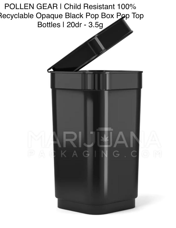 POLLEN GEAR | Child Resistant 100% Recyclable Opaque Black Pop Box Pop Top Bottles | 20dr - 3.5g - 590 Count